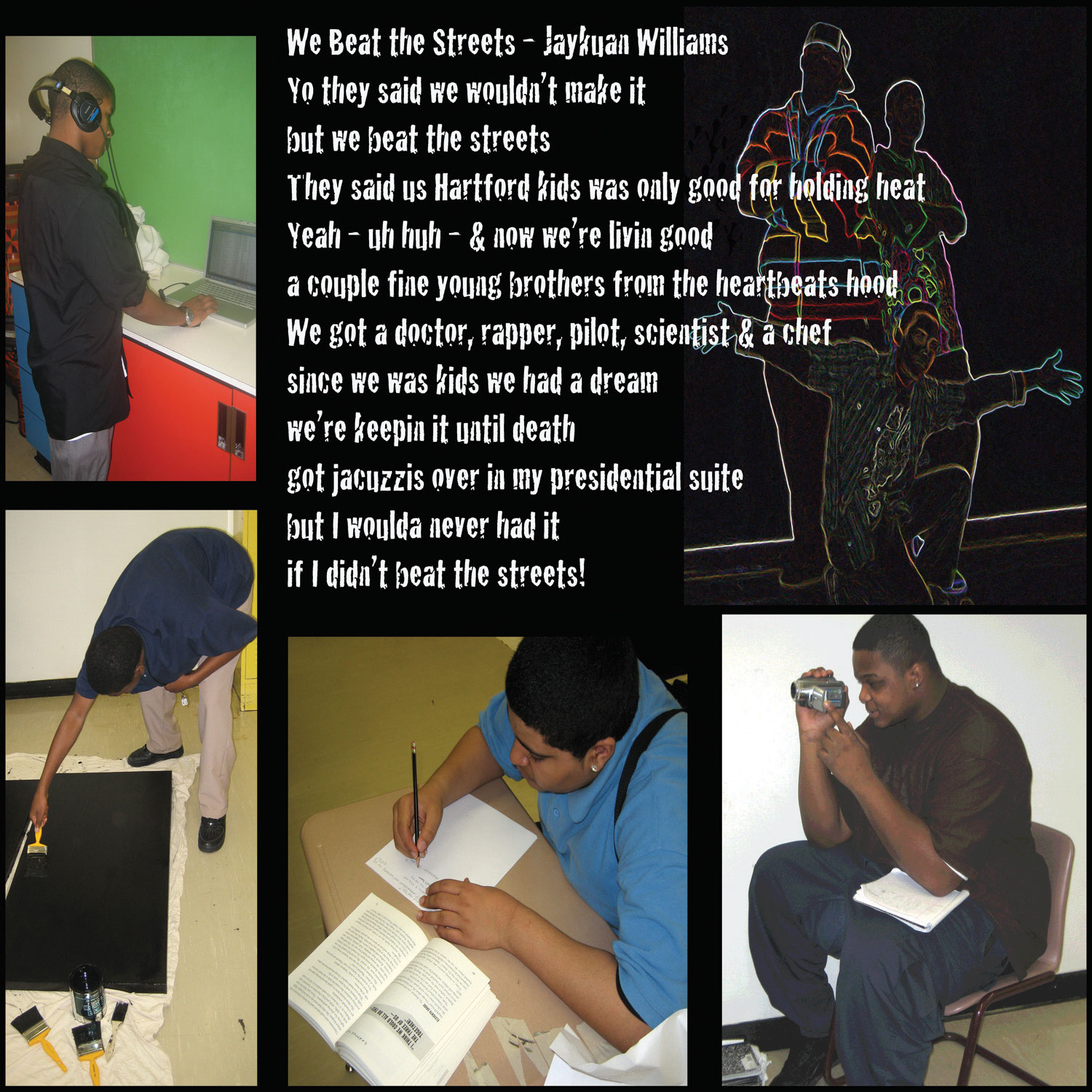 Classical Magnet Talent Show: Black Box Theatre: Multi-media installation and performance piece featuring original student music, rap, dance/choreography, poetry and large scale photo-collage prints, in Fast-Track Media and Explorer.